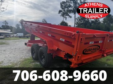 2024 Dura-Haul Bumper Pull Dump Trailer - 7'x14' - Cardinal Red, Powder Coat Superior Paint Finish , Extra Large Capacity 91" Wide Top Box 7 Gauge Smooth Plate Flooring, (2) 7,000 lb Tandem Axles Includes Electric Brakes, Engineered With 8” Ultra Strong I-Beam Frame, 24" Tall Fully Formed Sides 10 Gauge Top Rail 2.75" X 4.25", Dual Acting Power Hydraulic 5” X 21.5” X 2” Cylinder w/ Heavy Duty Scissor Hoist, Adjustable Rear Spreader Gate & Barn Doors w/ Double Handle For Spreader Gate, Lockable 2 Cu. Ft. Tool Box, Multi-Leaf Spring Suspension w/ Equalizers, 10,000 lbs Adjustable Leg Crank Jack. Safety Brake-Away System W/Cable, Diamond Plate Fenders, Side & Rear LED Markers (11) DOT Approved, Charger Pump, Battery & Remote Control Included, HD Ramps Quick Access 6'5" Long (Included), Easy-Load Extra Low 27" Deck Height, Adjustable 2-5/16" (6-Hole) Coupler, (4) ST235/80 R16 Tires & Spare Wheel & Tire, Black Mesh Tarp Included/Installed, Secure & Safe Tag Mount & Tag Light on Undercarriage