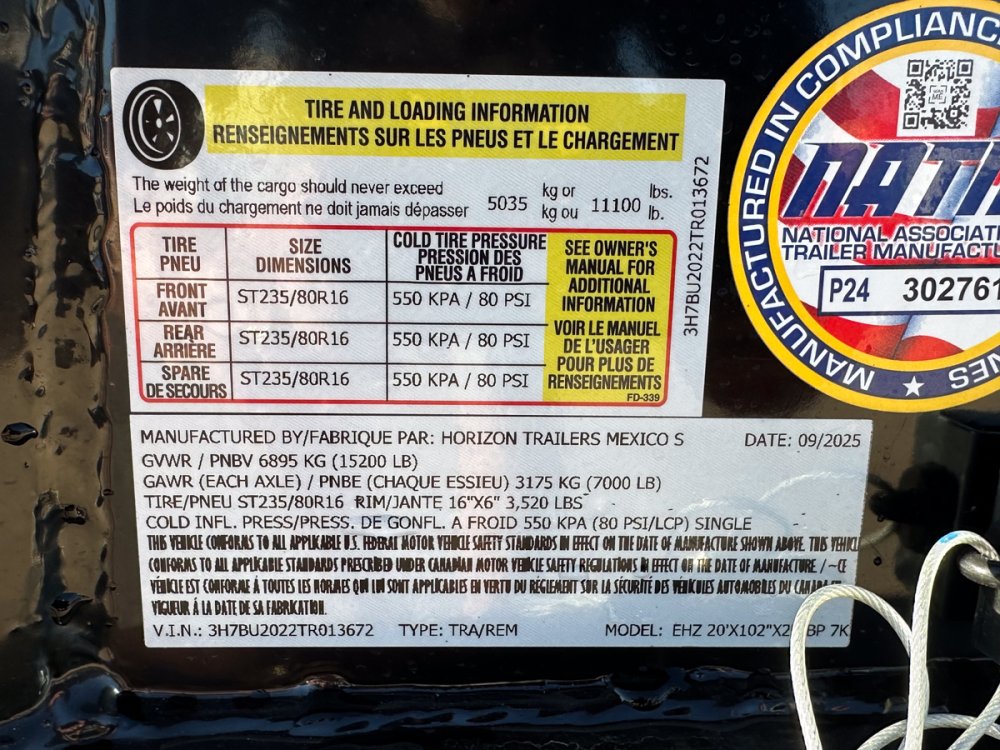 EHZ 20' x 83" BP EQUIPMENT TRAILER (2) 7K Axles, Stand Up Ramps, 14 Ply Tires