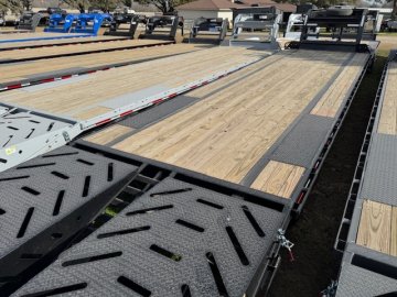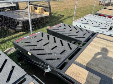 102" x 32' Mega Lockable Toolbox Robust Toolbox Latch Weld on spare tire mount Straight Deck Ramp Pockets with 8' long Heavy Duty Slide in 4' Channel Ramps Slide in Side Step on Both Sides Storage box behind neck / Winch Ready