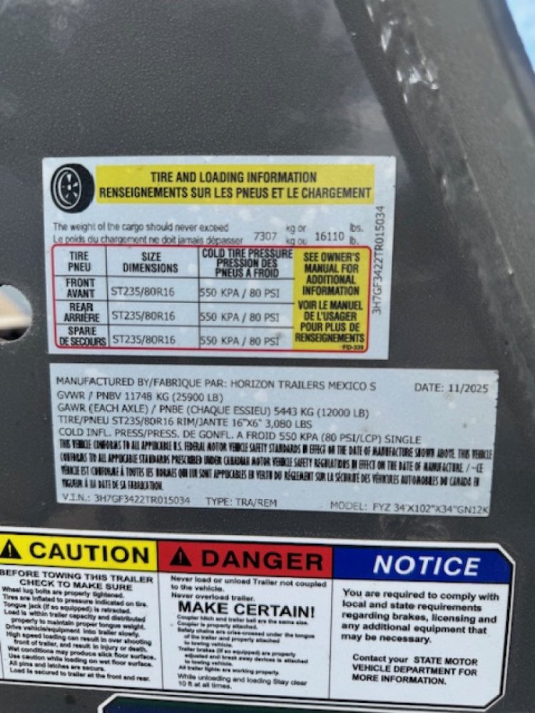 x34' Horizon FYZ 34' Gooseneck 12K Equipment