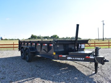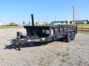 Hillcrest 7X16 14K bumper pull Dump Trailer, spreader gate, rear stabilizer stands, LED lights