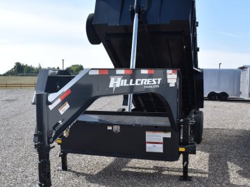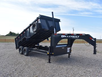 Hillcrest 7X16 14K Gooseneck Dump Trailer, 1-pc engineered neck, 40" sides, rear stabilizer stands