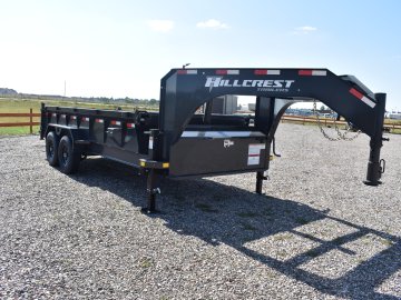 Hillcrest 7X16 14K Gooseneck Dump Trailer, 1-pc engineered neck, rear stabilizer stands, LED lights