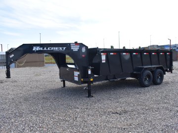 Hillcrest 7X16 16K Gooseneck Dump Trailer, 1-pc engineered neck, 40" sides, rear stabilizer stands