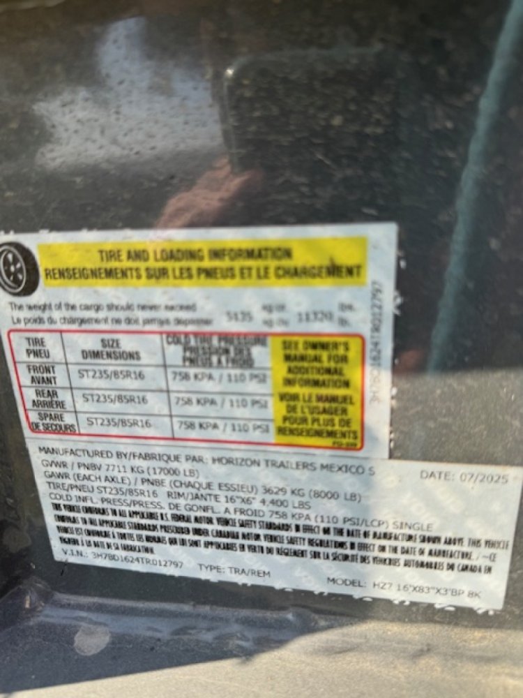 83x16x3 3' Sides Mega Lockable Toolbox ( Houses Battery and Pump) Robust Toolbox Latch Weld on spare tire mount Ramp pockets w/ 6'4" long slide in 4" channel ramps 4 D-Rings welded inside box Extra marker lights for added visibility Manual Tarp kit Side step on both sides