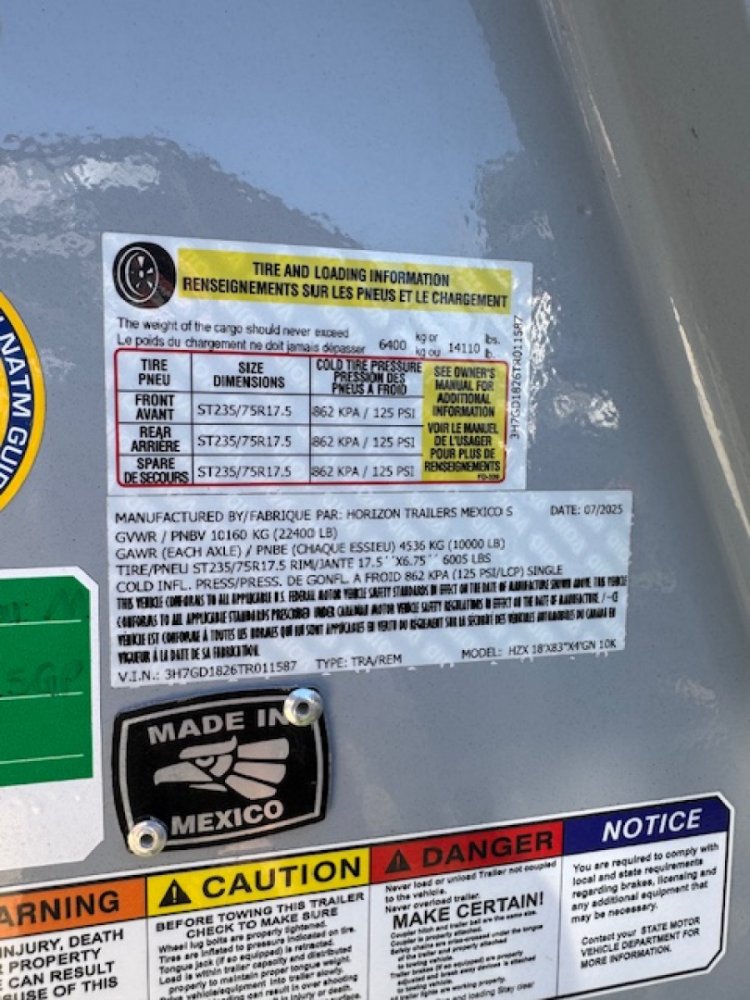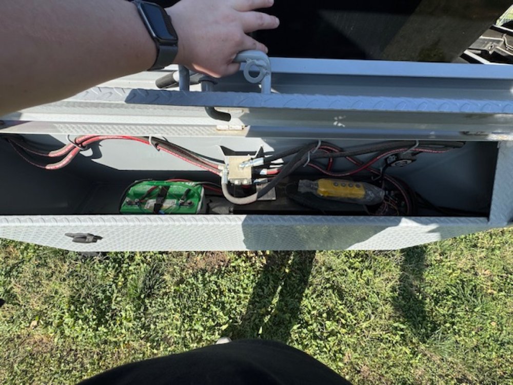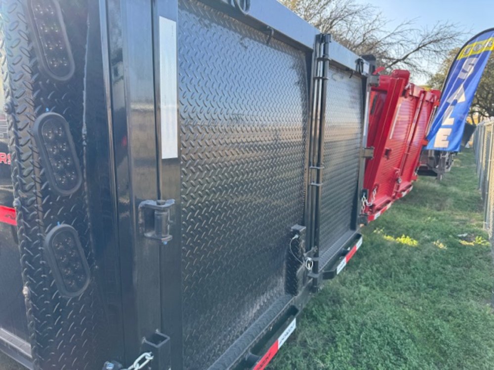 Tandem 10k Torsion Super Single axles 18 ply tires 18' dump 4' walls Telescopic cylinder Hydraulic jacks Tuff wireless control for jacks and dump Three way rear door Tarp Slide in ramps Solar battery charger
