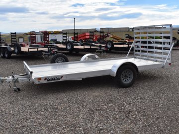 Triton 81"X14' 3K Aluminum Utility Trailer (Fit Series) 1" extruded alum decking, torsion axle, silver mod wheels, ST205/75R14 tires, spare tire, LED lights, straight ramp, 4 quick slide tie down D-rings, 5 quick slides, tongue jack