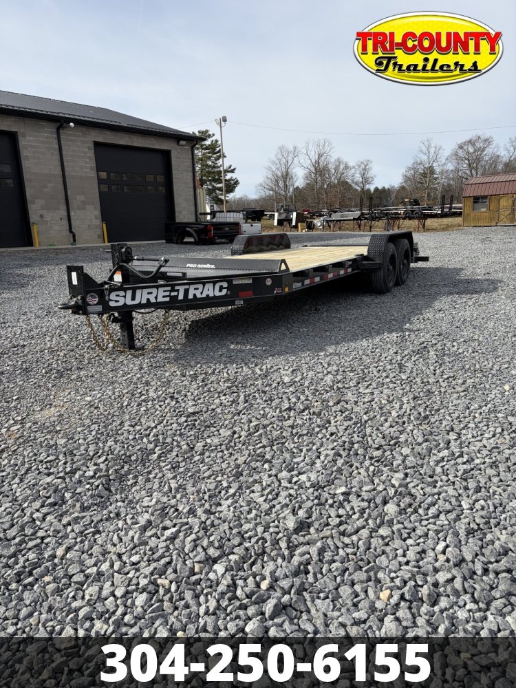 2026 Sure-Trac Pro Series Equipment Trailer 7 X 22' 176G (19+3) The Pro SeriesĀ® Equipment Trailer is the ultimate partner for the professional contractor who needs a trailer as tough and reliable as the equipment it hauls. Imagine heading to the job site, knowing your trailer is built to handle whatever you throw at it-day after day. This is a trailer designed not just to transport your tools and machines, but to support your demanding workload with strength, durability, and thoughtful features that make a real difference. Features May Include: Key Benefits Extended (72") Tongue Provides exceptional structural integrity and stability and the extra length makes it easier to maneuver the trailer in tight spaces. Bulkhead w/ Integrated Tie-Down Points >>> Adds additional rigidity to the front end of the trailer and provides versatility with additional option for securing your cargo. HD 2-Speed 12K Drop Leg Jack >>> Speeds up the retraction of the jacks saving you time and energy. 24" Wide Mesh Covered Stand-Up Ramps >>> Extra wide ramps provide extra space for safe loading and the mesh provides a smoother surface to accommodate a variety. Oversized Stake Pockets >>> Additional tie-down points that accommodate larger commercial straps for properly securing your equipment. Why Choose a Sure-Trac Pro Series Equipment Trailer? At the heart of the Pro Series Equipment Trailer is its robust heavy-duty I-Beam frame, which provides the structural integrity needed to carry heavy equipment and materials without breaking a sweat. Whether you're transporting large excavators, skid steers, or other vital machinery, this frame gives you the confidence that your trailer is up for the task. It's built tough to ensure strength, longevity, and performance-qualities every professional contractor values. But this trailer doesn't just stop at strength. It's designed to be practical and efficient in every way. The oversized stake pockets allow you to secure your load with ease, offering greater flexibility and customization for different cargo. Whether you're carrying lumber, pallets, or heavy machinery, you can trust that everything will stay safely in place, even during the longest hauls or roughest roads. The large front toolbox is another feature that sets this trailer apart. It's not just about storage; it's about convenience and readiness. The spacious toolbox gives you ample room for all your essential tools and accessories, keeping everything organized and within easy reach. And with the built-in LED light, you'll never have to fumble in the dark to find what you need, making it ideal for early mornings or late nights on the job. The Pro Series Equipment Trailer is engineered to support your most demanding applications, offering not only unmatched strength but also practical features that make your work easier, faster, and more efficient. It's not just a trailer-it's the dependable workhorse you need to get the job done right. Info Industry Trailer Make Sure-Trac Model Pro Series Equipment Trailer Trim 7 X 22' 176G (19+3) Year 2026 Msrp 13630 Price 12000 Stock Number 80037 Category Equipment Subcategory Equipment Trailer Condition New Location BEAVER Vin 5JW2U2824T3480037 Specifications GVWR17600 lbsMax Load12670 lbsLengthOverall: 396" | Ramp: 60" | Deck: 264" | 33"Width7" | Between Fender: 82"| Ramp: 24"HeightDeck: 22"Frame8", 13 lb/ft I-BeamCrossmembers3" Steel ChannelDry Weight4930 lbsD-Rings(4) 3/4"FendersDouble Break Tread PlateTires215/75R17.5J 18-PRCouplerHeight: 31-39.75" | 2-5/16" Adjustable GooseneckAxles(2) 8000 lb. Slipper Spring BrakeWheels17.5", 8-Hole SteelSafety ChainsDOT CompliantLightsFull LED, DOT CompliantRamps24" Wide HD Mesh Covered Stand-Up with Spring AssistFinishIndustrial Grade Polymer FinishTongueJack: Dual 12K, 2-Speed Landing Gear | 12" Extension