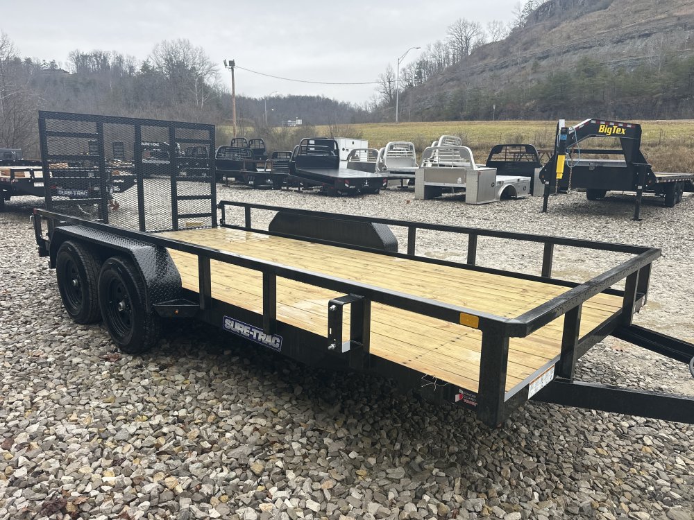 2026 Sure-Trac Tube Top Utility Trailer 7 x 16" 7k The Tube Top Utility Trailer is a versatile and robust option that caters to a wide range of hauling needs. Available in multiple sizes and GVWR options, this trailer is designed to handle various loads, making it an ideal choice for landscapers and sports enthusiasts alike. Whether you're working on landscaping projects or heading out for a weekend of outdoor fun, the Tube Top Utility Trailer offers the perfect blend of durability, functionality, and versatility. Experience the value and performance this trailer provides, ensuring you can tackle any job or adventure with ease. With its combination of strength and practicality, this trailer is an essential tool for any hauling task. Features May Include: Key Benefits 2" x 2" Tube Top Rail and Tube Uprights 2" x 2" tube top rail and tube uprights provide unmatched structural support and rigidity for a lasting investment. Brakes on Both Axles Brakes on Both Axles provide additional control when a quick stop is needed. Fold-Flat Ramp Gate Our versatile gate can be lowered when not in use to reduce unnecessary wind resistance. Plus, it's a real game-changer when you need to haul materials longer than your trailer. Self-Retained Gate Pins Our Self-Retained Gate Pins ensure quick and hassle-free operation - because you'll always know exactly where to find them. Setback Jack The Setback Jack is conveniently positioned to clear your tailgate to help prevent accidental damage. Drop your tailgate and access your bed space without your tailgating hitting the jack. Spare Tire Carrier A convenient way of carrying a spare tire to ensure you are prepared for any unexpected road hazards. Why Choose a Sure-Trac Tube Top Utility? Lasting Performance With strength, durability and unmatched value, Tube Top Utility trailers are the flagship models of Sure-TracĀ®. The tubular top rail is full-seam welded to tubular uprights to help enhance the frame for lasting performance. Available in many configurations, the Tube Top Utility trailer offers unmatched versatility and distinct Sure-TracĀ® quality. Sturdy Construction With its 2"x2" tube top rail and uprights, the trailer delivers exceptional rigidity and structural integrity, ensuring reliable performance even under heavy loads. This sturdy construction provides the stability needed for transporting equipment, tools, and recreational gear with confidence. Tandem Axle Stability The design enhances towing stability and weight distribution, making it easier to maneuver, especially when loaded. This feature is particularly beneficial for landscapers who may need to transport materials, such as plants, soil, and landscaping equipment, to job sites. Sports enthusiasts will also appreciate the trailer's capacity to haul ATVs, motorcycles, and other outdoor gear for their adventures. Thoughtful Design In addition to its robust build, the Tube Top Utility Trailer is equipped with user-friendly features that facilitate easy loading and unloading. Its thoughtful design allows for efficient use, making it a practical choice for anyone needing a reliable trailer. Info Industry Trailer Make Sure-Trac Model Tube Top Utility Trailer Trim 7 x 16" 7k Year 2026 Msrp 5060 Price 4475 Stock Number 73072 Category Utility Trailer Subcategory Utility Trailer Condition New Location Charleston Vin 5JW1U2020T1473072 Color Black Specifications GVWR7000 lbsMax Load5180 lbsLengthOverall: 239" | Ramp: 48" | Deck: 192" | 20"Width7" | Between Fender: 81.5"HeightDeck: 18" | Coupler: 16"Frame3" x 2" x 3/16" Steel AngleCrossmembers3" x 2" x 3/16" Steel AngleUprights2" x 2" Steel TubeDry Weight1820 lbsFendersSquare Rolled Steel Tread PlateAxles(2) 3500 lb. Spring BrakeWheels15", 5-Hole SteelSafety ChainsDOT CompliantLightsFull LED, DOT CompliantRamps4' Fold-Flat Spring-Assist with Grab Handle, Self-Retained Gate PinsTop Rail2" x 2" Steel TubeCouplerHeight: 16" | 2-5/16" A-FrameFinishIndustrial Grade Polymer FinishTongue4" Steel Channel | Jack: 2K Set-BackTiresST205/75R15C 6-PR