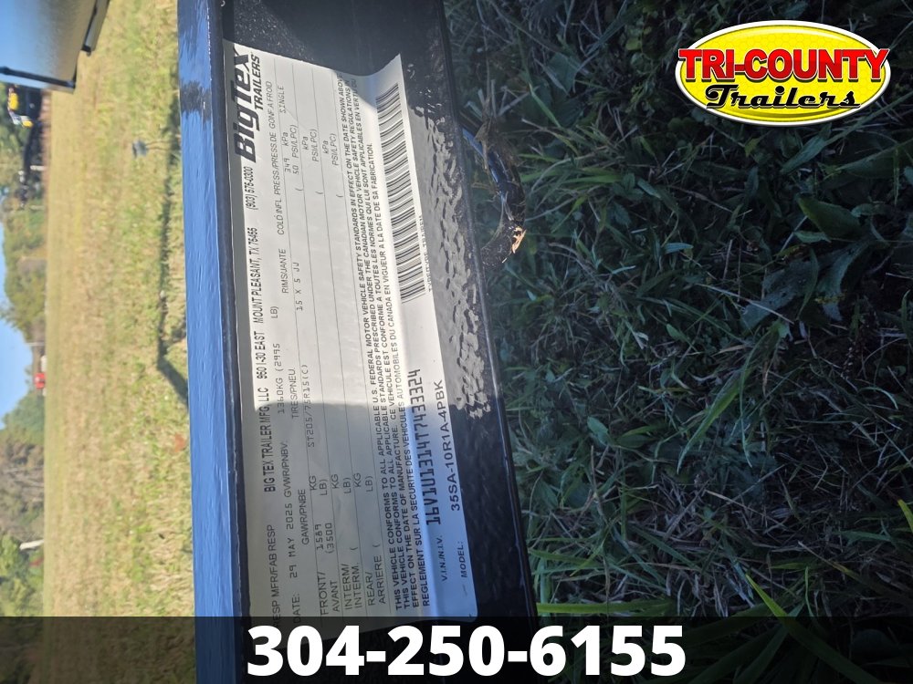 2026 Big Tex 35SA-10 35SA Single Axle Utility Trailer A trailer that works hard at home and on the job, the 35SA Single Axle Utility Trailer delivers versatility, reliability, and convenience-no matter the task at hand. Transporting equipment, landscaping supplies, or even some side-by-side vehicles, it's a trailer that's built for homeowners and outdoor enthusiasts seeking a rugged and dependable trailer for years to come. Info Industry Trailer Make Big Tex Model 35SA-10 Trim Base Year 2026 Msrp 2898 Price 2375 Stock Number 433324 Category Utility Trailer Subcategory Utility Trailer Condition New Location BEAVER Vin 16V1U1314T7433324 Dry Weight 893 Hitch Type 2" A Frame Coupler Axles 3500 Quick Lube w/Brake Flanges Length 10' Width 6' Suspension Multi leaf Spring Wheels 15" Tires 205/75/15 LRC Rear Door 4" Tall Rear Ramp gate w/coil spring assist Floor 2" Treated Gvwr 2995 Axle Capacity 3500 Payload Capacity 2102 Specifications GVWR2995 lbsDry Weight893 lbsMax Load2102 lbsLength10'Width77"Axles3,500# Premium, Cambered Axle with Quick-Lubricating HubsBrakesBrake Flanges for Easy Brake AdditionSuspensionMulti-Leaf Slipper SpringFrame3" x 2" x 3/16" AngleLightsL.E.D. D.O.T. Stop, Tail, Turn & ClearanceTiresST205/75 R-15 Load Range C