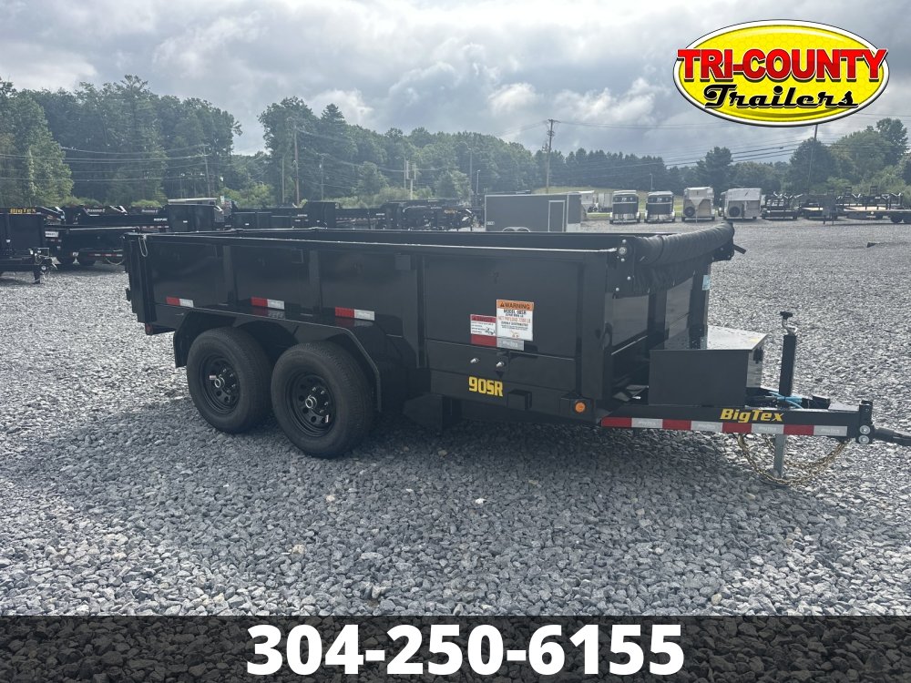 2026 Big Tex 90SR-12 90SR Tandem Axle Single Ram Dump Give your back a break with the 90SR Tandem Axle Single Ram Dump Trailer, a light-duty trailer equipped with a straight ram hydraulic lifting system that makes dump outs easier than ever before. With the strength and durability needed for hauling and dumping mulch, dirt, and gravel, this reliable trailer is built to get the job done for those at home or on a farm. And if you need to haul small equipment, say no more. An optional slide-in ramp package allows you to easily transport a piece of smaller equipment to wherever needed. Dealer Notes Sale Price Includes instant rebate from September 1st until October 31, 2025. Info Industry Trailer Make Big Tex Model 90SR-12 Trim Base Year 2026 Msrp 10751 Price 8350 Stock Number 29337 Category Dump Trailer Subcategory Dump Trailer Condition New Location BEAVER Vin 16V1D1629T7429337 Dry Weight 2930 Color Black Hitch Type BUMPER 2-5/16 Axles 2-5200 Quick Lube w/electric brakes Length 12' Width 72" Height 20" Suspension Multi leaf Spring w/equalizer Wheels 15" Tires 225/75/15 LRD Rear Door Double Rear Doors Floor 12 Guage Smooth Steal Gvwr 9900 Axle Capacity 2-5200# Payload Capacity 7060 Specifications GVWR9990 lbsWidth72"Frame6x2 Rectangular Tubing ILO 6" channelFenders9" x 72" 14 Ga. Diamond Plate Double Square BrokeSuspensionMulti-Leaf Slipper Spring w/ EqualizerTiresST225/75 R-15 Load Range D Radial TiresTongue6" Channel | Length: 45FinishProfessional Finish w/ Primer StandardMax Load7060 lbsCrossmembers3" Channel on 16" CentersDry Weight2930 lbsGate/DoorDouble Rear DoorsBrakesForward Self-Adjusting Electric BrakesCouplerAdjustable ForgedTop Rail2" x 2" Square TubingBattery12V Deep CycleLength12'Axles2 - 5,200# Premium, Cambered Axles with Quick-Lubricating HubsWheelsBlack Mod SteelSafety Chains1/4" Grd. 70 w/Safety Latch Hook (2 each)Floor12 Gauge Smooth SteelLightsRecessed, Grommet-Mounted L.E.D. Lighting