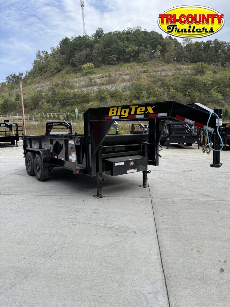 2026 Big Tex 14GX-14 14GX Heavy Duty Tandem Axle Gooseneck Dump For the ultimate in strength and durability, look to the 14GX Heavy Duty Tandem Axle Extra Wide Gooseneck Dump Trailer-from its robust and long-lasting structure and frame to heavy-duty dump box with 10-Gauge steel floors. Packed to the brim with the most complete box unit in the industry, the 14GX is designed to handle heavy-duty and extra wide loads with superior stability and efficiency. Info Industry Trailer Make Big Tex Model 14GX-14 Trim Base Year 2026 Msrp 15280 Price 11990 Stock Number 45252 Category Dump Trailer Subcategory Dump Trailer Condition New Location Charleston Vin 16V3D2224T5445252 Dry Weight 4640 Color Black Hitch Type Gooseneck Axles 2-7000 EZ lube / Electric Brakes Length 14' Width 83" Height 24 ' Suspension Multi Leaf Spring w/Equalizer Tires 235/80/16 LRE Rear Door Combo Gate Barn Doors and Spreader Gate Floor 10GA SHEET METAL FLOORS Gvwr 15900 Axle Capacity 2-7000 Payload Capacity 11370 Specifications GVWR15900 lbsDry Weight4640 lbsMax Load11260 lbsLength14'Width83"TongueLength: 51-1/8" | 8" Seamless I-Beam Integrated w/ Frame (10#)Axles2 - 7,000# Premium, Cambered Axles with Quick-Lubricating HubsBrakesForward Self-Adjusting Electric Brakes on Both AxlesSuspensionMulti-Leaf Slipper Spring w/ EqualizerFrame8" I-Beam (10#)LightsRecessed, Grommet-Mounted L.E.D. LightingTiresST235/80 R-16 Load Range E Radial TiresWheelsBlack Mod SteelCouplerRound Adjustable Pin 2-5/16" Gooseneck CouplerSafety Chains3/8" Grade 70 w/ Safety Latch Hook (2 ea)Crossmembers3" Channel on 16" CentersFloor10 Gauge Smooth SteelFenders9" x 72" 14 Ga. Diamond Plate Double BrokeFinishProfessional Finish w/ Primer StandardBattery12V Deep CycleGate/DoorRear Combo Gate (Barn Doors & Spreader Gate)StepConvenient Side-Step to Access Top RailTop Rail3"x 2" Rectangular Tubing