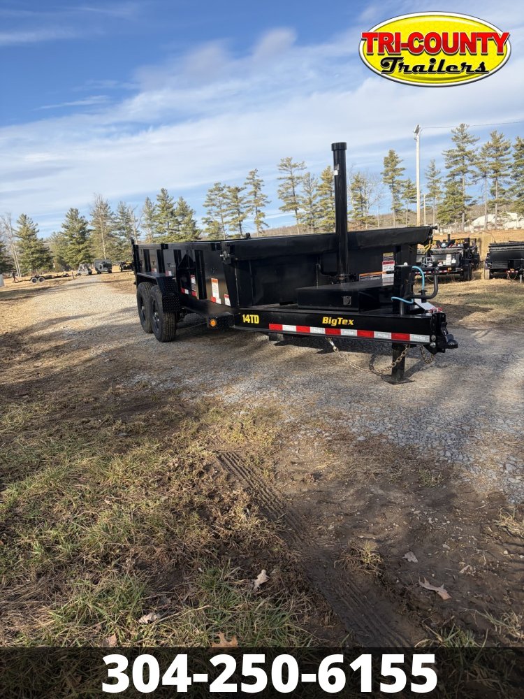 2026 Big Tex 14TD-16 14TD Heavy Duty Telescopic Dump Trailer Deal with big, dirty jobs? Bring it on. Professionals in construction, landscaping, and waste management need a trailer that handles heavy-duty, bulky cargo and debris without breaking a sweat. They need the 14TD Heavy Duty Telescopic Dump, a powerful dump trailer that features a class-leading 12-ton telescopic cylinder to make unloading and loading effortless-even when dealing with uneven or loose materials. Plus, its construction has been informed by advanced engineering for enhanced durability and reliability. Dealer Notes DUMP TRAILERS Info Industry Trailer Make Big Tex Model 14TD-16 Trim Base Year 2026 Msrp 14126 Price 11300 Stock Number 44349 Category Dump Trailer Subcategory Dump Trailer Condition New Location BEAVER Vin 16V1D2122T5444349 Specifications GVWR14000 lbsWidth83"Frame8" Seamless I-Beam (13#)SuspensionMulti-Leaf Slipper Spring w/ EqualizerTiresST235/80 R-16 Load Range E Radial TiresTongueLength: 61-1/4" | 10" I-Beam NeckBrakesForward Self-Adjusting Electric Brakes on Both AxlesAxles2 - 7,000# Premium, Cambered Axles with Quick-Lubricating HubsLightsRecessed, Grommet-Mounted L.E.D. LightingDry Weight4430 lbsMax Load9570 lbsLength16'Fenders9" x 72" 14 Ga. Diamond Plate Double BrokeFinishProfessional Finish w/ Primer StandardCrossmembers3" Channel on 16" CentersGate/DoorRear Combo Gate (Barn Doors & Spreader Gate)Coupler2-5/16" Ball, Adjustable Demco EZ Latch CouplerTop Rail3"x 2" Rectangular TubingBattery12V Deep CycleWheelsBlack Mod SteelSafety Chains3/8" Grade 70 w/ Safety Latch Hook (2 ea)Floor10 Gauge Smooth SteelStepConvenient Side-Step to Access Top Rail