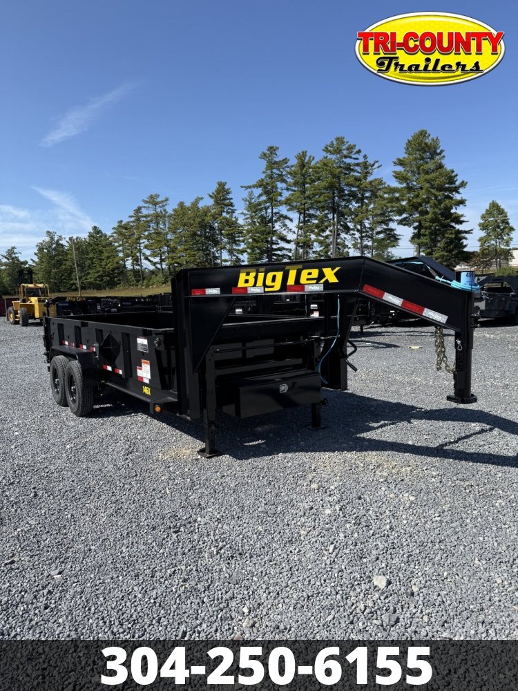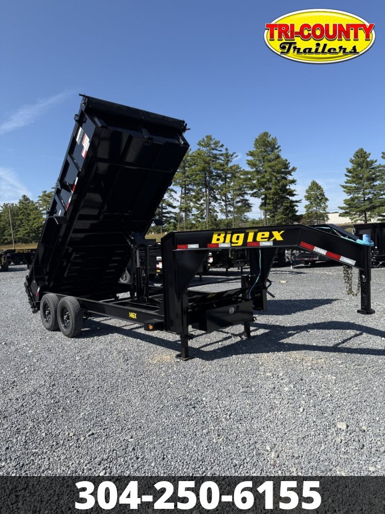 2026 Big Tex 14GX-16 14GX Heavy Duty Tandem Axle Gooseneck Dump For the ultimate in strength and durability, look to the 14GX Heavy Duty Tandem Axle Extra Wide Gooseneck Dump Trailer-from its robust and long-lasting structure and frame to heavy-duty dump box with 10-Gauge steel floors. Packed to the brim with the most complete box unit in the industry, the 14GX is designed to handle heavy-duty and extra wide loads with superior stability and efficiency. Info Industry Trailer Make Big Tex Model 14GX-16 Trim Base Year 2026 Msrp 15178 Price 12850 Stock Number 49691 Category Dump Trailer Subcategory Dump Trailer Condition New Location BEAVER Vin 16V3D2424T7449691 Dry Weight 4830 Color BLACK Hitch Type Gooseneck Axles 2-7000# w/EZ Lube Hubs & Elec Brakes Length 16' Width 83" Height 24" Suspension Multi Leaf Spring w/Equalizer Tires 235/80/16 LRE Rear Door Combo Gate Barn Doors and Spreader Gate Floor 10GA SHEET METAL FLOORS Gvwr 15900 Axle Capacity 2-7000 Payload Capacity 11080 Specifications GVWR15900 lbsDry Weight5000 lbsLengthBed: 16'Width83"TongueLength: 51-1/8" | 8" Seamless I-Beam Integrated w/ Frame (10#)Axles2 - 7,000# Premium, Cambered Axles with Quick-Lubricating HubsBrakesForward Self-Adjusting Electric Brakes on Both AxlesSuspensionMulti-Leaf Slipper Spring w/ EqualizerCouplerRound Adjustable Pin 2-5/16" Gooseneck CouplerSafety Chains3/8" Grade 70 w/ Safety Latch Hook (2 ea)Frame8" I-Beam (10#)Crossmembers3" Channel on 16" CentersFloor10 Gauge Smooth SteelFenders9" x 72" 14 Ga. Diamond Plate Double BrokeLightsRecessed, Grommet-Mounted L.E.D. LightingTiresST235/80 R-16 Load Range E Radial TiresWheelsBlack Mod SteelBattery12V Deep CycleGate/DoorRear Combo Gate (Barn Doors & Spreader Gate)StepConvenient Side-Step to Access Top RailTop Rail3"x 2" Rectangular TubingFinishProfessional Finish w/ Primer StandardMax Load10900 lbs