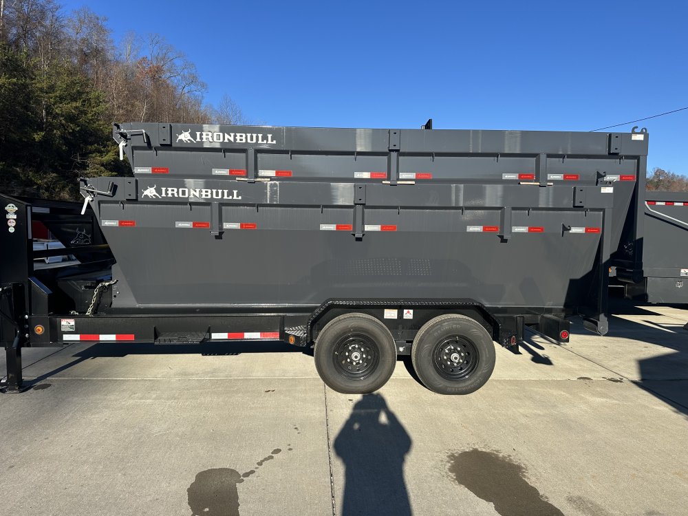 2026 Iron Bull Trailers DBG14 83x16 Our biggest addition to our dump trailer lineup this year, the DBG Gooseneck Roll-Off Dump Trailer. First we designed a trailer frame that could handle the heaviest of loads with a 12" 19lb I-beam neck and 10" frame. Built with 2 7,000lb electric brake axles to get you to the job site and back again and a TH-520 scissor hoist for maximum lifting power - this trailer can haul! Add a bin of your choice with 48" 10 gauge sides, 4 1/2" DIA front rear rollers and a 20k winch system conveniently located in the front toolbox, all designed to handle any situation you throw at it. Take your roll-off system to the next level with the Roll-Off Deck option-a game-changer for those who need more than just dumpster hauling. This heavy-duty flat deck transforms your roll-off trailer into a multi-functional hauling platform, perfect for transporting equipment, pallets, lumber, and more. Built with the same rugged standards as our dumpster boxes, the roll-off deck features a reinforced steel frame, stake pockets, rub rails, and a durable wood floor, ensuring reliable performance under heavy loads. Features May Include: 2 - 7,000 lb Axles Straight (2 Elec. Brakes) ST235/80 R16 LRE Radial Tires 10" I-Beam Frame & Neck 12" Risers 2" x 4" Tube Deck 4" × 8" Tube Rear Bumper Spare Tire Mount 25K 2-5/16" Adjustable Coupler Diamond Plate Fenders (Bolt On) 2-10k Spring Loaded Drop-Leg Jacks Side Step Plate Standard Wiring Harness 20k Winch With Cable 60.75" Rail Width Flow Control Valve Tool Box for Winch With 2 Batteries Safety Chain On Deck Front Tool Box TH-520 Scissor Hoist 6"' Oval LED Lights 36" Deck Height Dealer Notes *Price Is For Trailer Only! As Pictured With Two Bins Price Is $24,530 Info Industry Trailer Make Iron Bull Trailers Model DBG14 Trim 83x16 Year 2026 Msrp 15270 Price 12995 Stock Number 98654 Category Roll Off Subcategory Roll Off Condition New Location Charleston Vin 3EUDG1621T1098654 Dry Weight 4530 Length 16 Gvwr 14000 Specifications Length16'Width83"