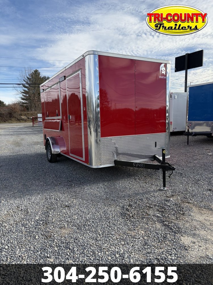 2026 Spartan Cargo Trailers 7' x 14' Tandem Axle Dealer Notes 7' INTERIOR HEIGH, 72WX36H CONCESSION DOOR W/GLASS AND SCREEN, STABILIZER JACKS, WIRE AND BRACE FOR AC, WALL INSULATION, CEILING INSULATION, 12"X72"L FOLD DOWN SHELF,4' LED STRIP LIGHTS, 16" 12V LED EXTERIOR LIGHTS Info Industry Trailer Make Spartan Cargo Trailers Model 7' x 14' Tandem Axle Trim Base Year 2026 Msrp 10995 Price 9350 Stock Number 53480 Category Cargo Trailer Subcategory Cargo Trailer Condition New Location BEAVER Vin 50XBE142XTA053480 Color Red Specifications Length220 inWidth103 inHeight97 inEnclosed Width81.5 inEnclosed Length188 inEnclosed Depth78 inTires205-75-15 RadialWheelsGrey SteelHitch Size2-5/16"Dry Weight2380GVWR7000FloorThickness: 3/4" Stable DeckWallsThickness: 3/8" BC Plywood | Stud: 1"x1-1/2" TubeCrossmembers16" C-Channel