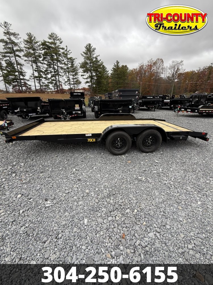 2026 Big Tex 70CH-18 70CH Tandem Axle Car Hauler Work harder and look great while doing it with the 70CH Tandem Axle Car Hauler, a tough and versatile car hauler purpose-built to transport cars, small tractors, ATVs, and side-by-sides. This tandem axle car hauler trailer comes equipped with steel teardrop fenders that are bolted on for easy removal and reinstallation, giving you flexibility during loading and unloading and making maintenance easier. And if you want to make loading and unloading safer, an optional 4' slide-in angle ramp package does just that. Pack it up. Haul it out. Get it done. The 70CH has your back. Dealer Notes CAR HAULERS Info Industry Trailer Make Big Tex Model 70CH-18 Trim Base Year 2026 Msrp 4554 Price 3750 Stock Number 34628 Category Car Hauler Subcategory Car Hauler Condition New Location BEAVER Vin 16V1C2227T2434628 Specifications GVWR7000 lbsWidth83"Frame5" x 3" x 5/16" Angle (1/4" on 16')SuspensionMulti-Leaf Spring w/ EqualizerTiresST205/75 R-15 Load Range CTongue4" Channel Fold Back/Wrap Tongue | Length: 45"BrakesForward Self Adjusting Electric Brake on Front AxleAxles2 - 3,500# Premium, Cambered Axles with Quick-Lubricating HubsLightsL.E.D. D.O.T. Stop, Tail, Turn & ClearanceDry Weight1910 lbsMax Load5090 lbsLength18'Fenders9" x 72" Tear DropFinishProfessional Finish w/ Primer StandardCoupler2" Forged, AdjustableCrossmembers3" x 2" x 3/16" AngleWheelsBlack ModSafety Chains1/4" Grd. 70 w/Safety Latch Hook (2 each)FloorTreated Pine Floor