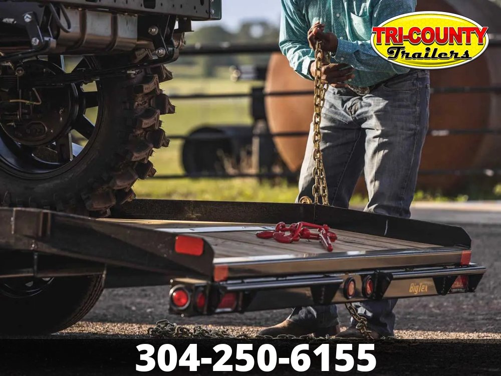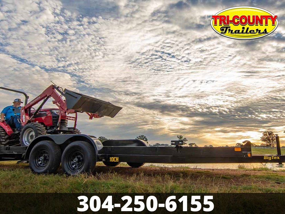 2026 Big Tex 10CH-18 10CH Pro Series Tandem Axle Car Hauler More capacity. More strength. If that's what you need for your car hauling needs, then the 10CH Pro Series Tandem Axle Car Hauler is your trailer. With a 9,990 lbs G.V.W.R., the 10CH hauls everything from cars and tractors to light- and medium-duty equipment-a professional-grade hauler that's constructed to tackle tough tasks. Featuring a fabricated front stop rail, easy load angle, and premium axle, this is a heavy-duty car hauler purpose-built for safely and securely transporting vehicles and equipment. Info Industry Trailer Make Big Tex Model 10CH-18 Trim Base Year 2026 Msrp 6288 Price 5100 Stock Number 444526 Category Car Hauler Subcategory Car Hauler Condition New Location BEAVER Vin 16V1C2225T2444526 Specifications GVWR9900 lbsDry Weight2125 lbsMax Load7775 lbsLength18'Width83"Axles2 - 5,200# Premium, Cambered Axles with Quick-Lubricating HubsBrakesForward Self-Adjusting Electric BrakesSuspensionMulti-Leaf Spring w/ EqualizerFrame6" x 3.5" x 5/16" Angle (1/4" on 16')LightsL.E.D. D.O.T. Stop, Tail, Turn & ClearanceTiresST225/75R-15 Load Range DCouplerAdjustable, Forged 2-5/16" Coupler in ChannelSafety Chains1/4" Grd. 70 w/Safety Latch Hook (2 each)Crossmembers3" x 2" x 3/16" AngleFloorTreated Pine FloorRampsSide Slide In RampsFinishProfessional Finish w/ Primer Standard