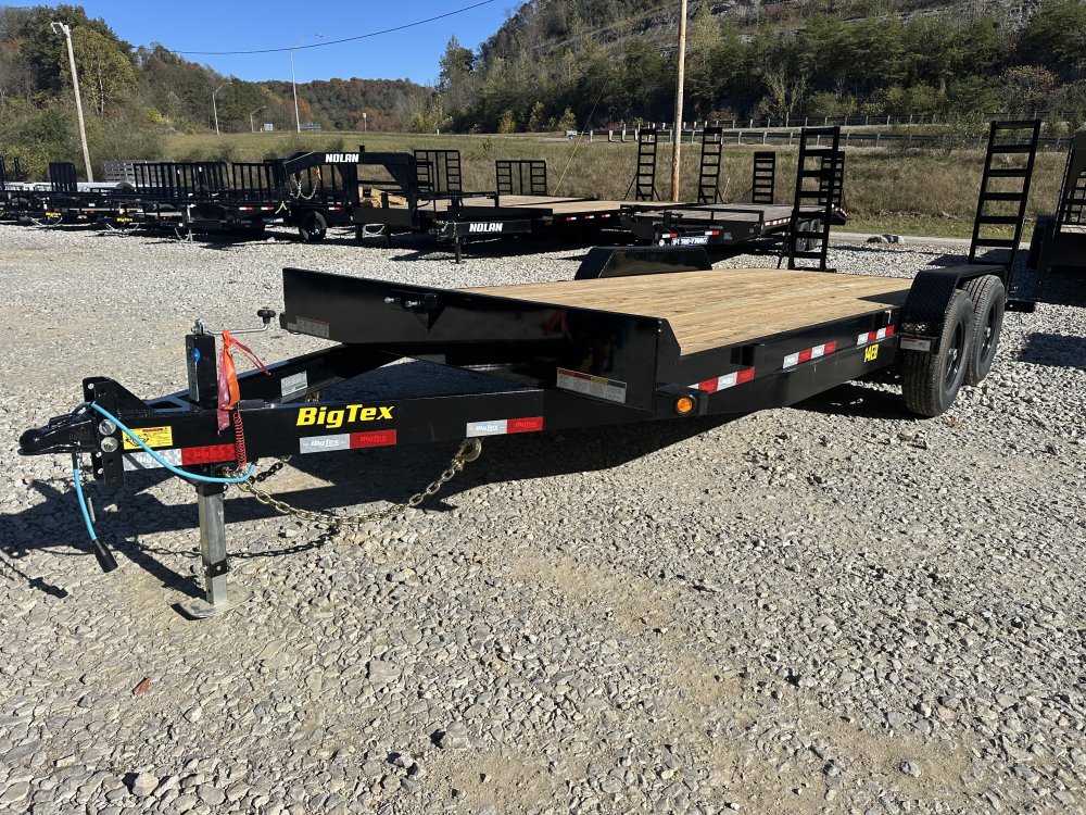 2026 Big Tex 14EB-20D2A 14EB Tandem Axle Equipment Trailer Nomad Logo Tested Big Tex Tough. Value Guaranteed. The 14EB from Big Tex Trailers is designed for those who seek reliability and value without sacrificing quality. This trailer features a 6" channel frame and tongue, ensuring exceptional strength and durability for any haul. With tandem 7,000# axles and forward self-adjusting brakes, the 14EB provides a stable and smooth towing experience. It offers an 83"-wide deck with a 32" dovetail, adjustable knee ramps, a fabricated front stop rail with an integrated spare tire mount, and six strategically placed stake pockets, making it a versatile and reliable partner for all your equipment hauling needs. Dealer Notes Equipment Trailer Info Industry Trailer Make Big Tex Model 14EB-20D2A Trim Base Year 2026 Msrp 7605 Price 6150 Stock Number 48245 Category Equipment Subcategory Equipment Trailer Condition New Location Charleston Vin 16V1C2529T3448245 Color Black Specifications GVWR14000 lbsWidth83"Frame6" ChannelSuspensionMulti-Leaf Slipper Spring w/ EqualizerTiresST235/80 R-16 Load Range E Radial TiresBrakesForward Self-Adjusting Electric Brakes on All HubsAxles2 - 7,000# Premium, Cambered Axles with Quick-Lubricating HubsLightsL.E.D. D.O.T. Stop, Tail, Turn & ClearanceDry Weight2860 lbsMax Load11140 lbsLength20'