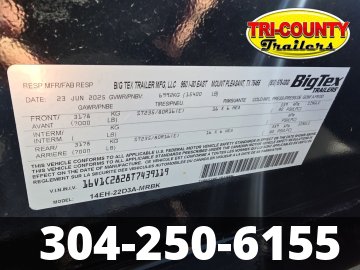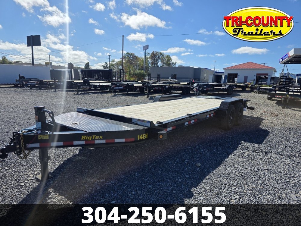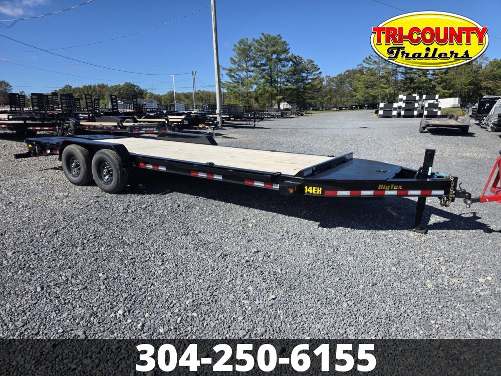 2026 Big Tex 14EH-22D3A 14EH Heavy Duty Tandem Axle Seamless I-Beam Equipment Trailer X Series Logo Part of the all-new X-Series, the 14EH Equipment Trailer from Big Tex Trailers is engineered for professionals who demand durability and innovation. The 14EH features a Mega-Sized Toolbox for added storage capacity. It's enhanced with a Full-Length Rub Rail, D-Rings, and Stake Pockets, providing multiple secure tie-down options for a variety of cargo. The 14EH revolutionizes loading and unloading with its optional Self-Stabilizing Mega Ramps, offering unparalleled flexibility for all your hauling needs. Info Industry Trailer Make Big Tex Model 14EH-22D3A Trim Base Year 2026 Msrp 10485 Price 8200 Stock Number 39119 Category Flatbed Trailer Subcategory Flatbed Trailer Condition New Location BEAVER Vin 16V1C2828T7439119 Dry Weight 3300 Hitch Type BUMPER 2-5/16 Axles 2-7000 W/FSA Electric Brakes Length 22' Width 83" Suspension Multi leaf Slipper Spring w/equalizer Tires 235/80/R-16 Load Range E Floor 2" Treated Gvwr 15400 Payload Capacity 12100 Specifications Dry Weight3240 lbsMax Load12160 lbsLength22'GVWR15400 lbsWidth83"Frame8" I-BeamSuspensionMulti-Leaf Slipper Spring w/ EqualizerTiresST235/80 R-16 Load Range E Radial TiresBrakesForward Self-Adjusting Electric Brakes on All HubsAxles2 - 7,000# Premium, Cambered Axles with Quick-Lubricating HubsLightsL.E.D. D.O.T. Stop, Tail, Turn & Clearance