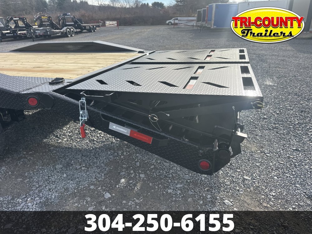 2026 Iron Bull Trailers EHB22 102x22, 22000 Engineered for heavy-duty hauling and rugged reliability, the EHB is your go-to solution when performance and durability are non-negotiable. This powerhouse is equipped with two 10,000 lb straight single wheel axles, including electric brakes for enhanced stopping power and control under load. Constructed with a 10" I-beam underframe bridge, the EHB features a 83" or 102" wide straight deck supported by 16" crossmembers made of 3" 3.5 lb C-channel steel, ensuring structural integrity for the most demanding jobs. The deck is finished with treated wood flooring for long-lasting durability in all weather conditions. For convenience and versatility, the trailer includes 8' slide-in ramps, drive-over diamond plate fenders, and a full-size front toolbox integrated into the tongue. The bumper pull adjustable 25k 2-5/16" coupler and spring-loaded drop-leg jack (10K) offer straightforward hookup and leveling, even with heavy equipment. Features May Include: 10" x 19lb I-Beam Frame 10" x 19lb I-Beam Neck Slide In Ramps 16" Crossmembers (3" 3.5lb C-channel) Full Size Front Toolbox in Tongue Bumper Pull Adj 25k Coupler 2 5/16 Spring Loaded Drop Leg Jack 10K Drive Over Diamond Plate Fenders Floor Treated Wood Front Bumper (Std.) Standard Wire Harness & Lights D-Rings 3" x 5/8" Weld On ST215/75R17.5 (H)16 Ply Spare Tire Mt. BLK - Black Info Industry Trailer Make Iron Bull Trailers Model EHB22 Trim 102x22, 22000 Year 2026 Msrp 14950 Price 13200 Stock Number 12790 Category Equipment Trailer Subcategory Equipment Trailer Condition New Location BEAVER Vin 50HEB2221T1912790 Specifications Width102"Length22'GVWR22,000Axles2 x 10,000Tires215Wheels75R17.5 8 HoleTongue10 " I Beam