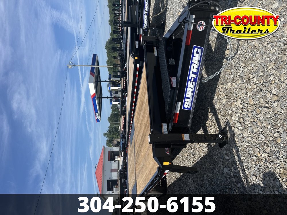 2025 Sure-Trac Heavy Duty Low Profile Power Tilt Deckover Trailer 8.5 x 24 15K HD Deckover Power Tilt Available in both bumper pull and gooseneck configurations, the Sure-TracĀ® Heavy Duty Low Profile Power Tilt Deckover Trailer is a game-changer for anyone needing to transport heavy equipment and vehicles with ease and efficiency. Designed for serious haulers, this trailer combines rugged durability with innovative features to ensure you can tackle the toughest jobs. The standout feature of this trailer is its power tilt deck, which allows for effortless loading and unloading. With the push of a button, the deck tilts to a low angle, providing a smooth, gradual incline for easy access. This is especially useful for loading heavy machinery, vehicles, or construction equipment, reducing the risk of damage and minimizing strain during the process. Features may include: HD Tube Bulkhead Enhances safety and cargo security by providing a sturdy barrier that prevents loads from shifting during transport. D-Rings In All the Right Places Six 5/8" D-Rings provide plenty of tie-down points to keep your cargo safe while hauling - and +4 models get two more D-Rings for a total of 8. Stake Pockets, Chain Spools, and Rub Rail Added points to strap your load down with to make sure it's safe and secure during transport. Gooseneck Configuration Provides improved towing stability and enhanced weight distribution, allowing for smoother handling and better control when transporting heavy equipment. Side Steps Easy access to the deck of the trailer. Tongue Mounted HD Control Box with Key Lock The control center for your trailer located right where you need it. 110V Battery Charger You can always be prepared with an on-board battery charger to get you back up and running. Info Industry Trailer Make Sure-Trac Model Heavy Duty Low Profile Power Tilt Deckover Trailer Trim 8.5 x 24 15K Year 2025 Msrp 14007 Price 12980 Stock Number 71159 Category Tilt Subcategory Tilt Condition New Location Beaver Vin 5JW1U2426S3471159 Dry Weight 4485 Color Black Hitch Type Pintle Axles Easy Lube Hubs with Brakes Length 24' Width 8.5 Suspension Slipper Leaf Spring Tires 215/75R17.5 LRH Floor 2" Treated Gvwr 15000 Axle Capacity 2-7000 Payload Capacity 10515 Specifications GVWR15000 lbs | GAWR: 7000 lbs/axleDry WeightCurb: 4930Width8.5 | Tilting Deck: 102Length29 | Overall: 354 | Deck: 294HeightCoupler: 21-29 | Deck: 34ElectricalOn-Board Charger 4 Amp (110V Plug In) | 12 Volt DC 24 BatteryAxles(2) 7000 lb. Slipper Spring BrakeCouplerAdjustable Pintle RingLightsFull LED, DOT CompliantFrame10", 12 lb/ft I-Beam, Side Rails - 6" x 2" x 3/16" Steel TubeSafety ChainsDOT CompliantTiresST235/80R16E 10-PRTongue10" Flange, 12 lb/ft I-Beam | Jack: 12K Drop Leg, Set-BackWheels16", 8-Hole SteelFinishIndustrial Grade Polymer FinishCrossmembers3" Steel Channel